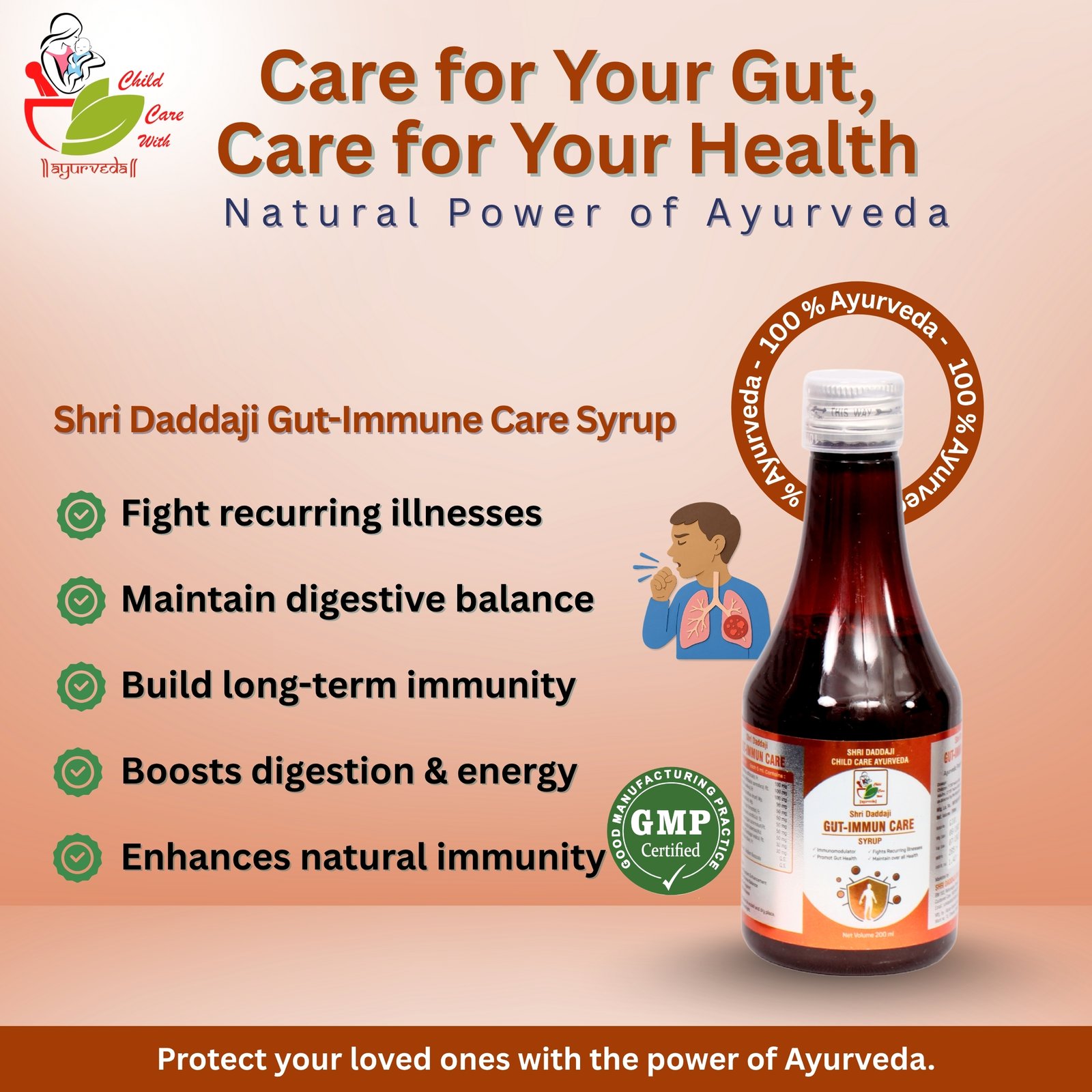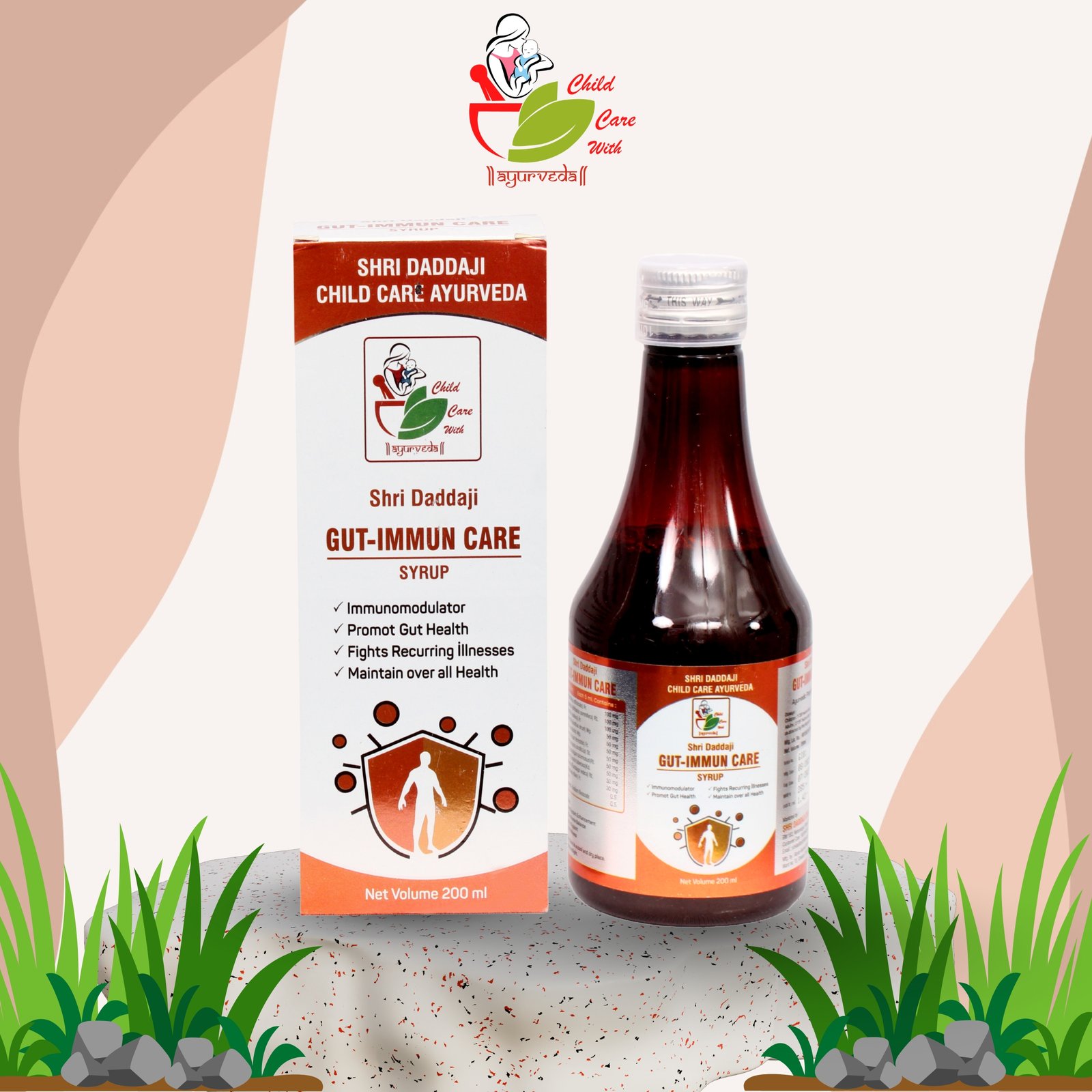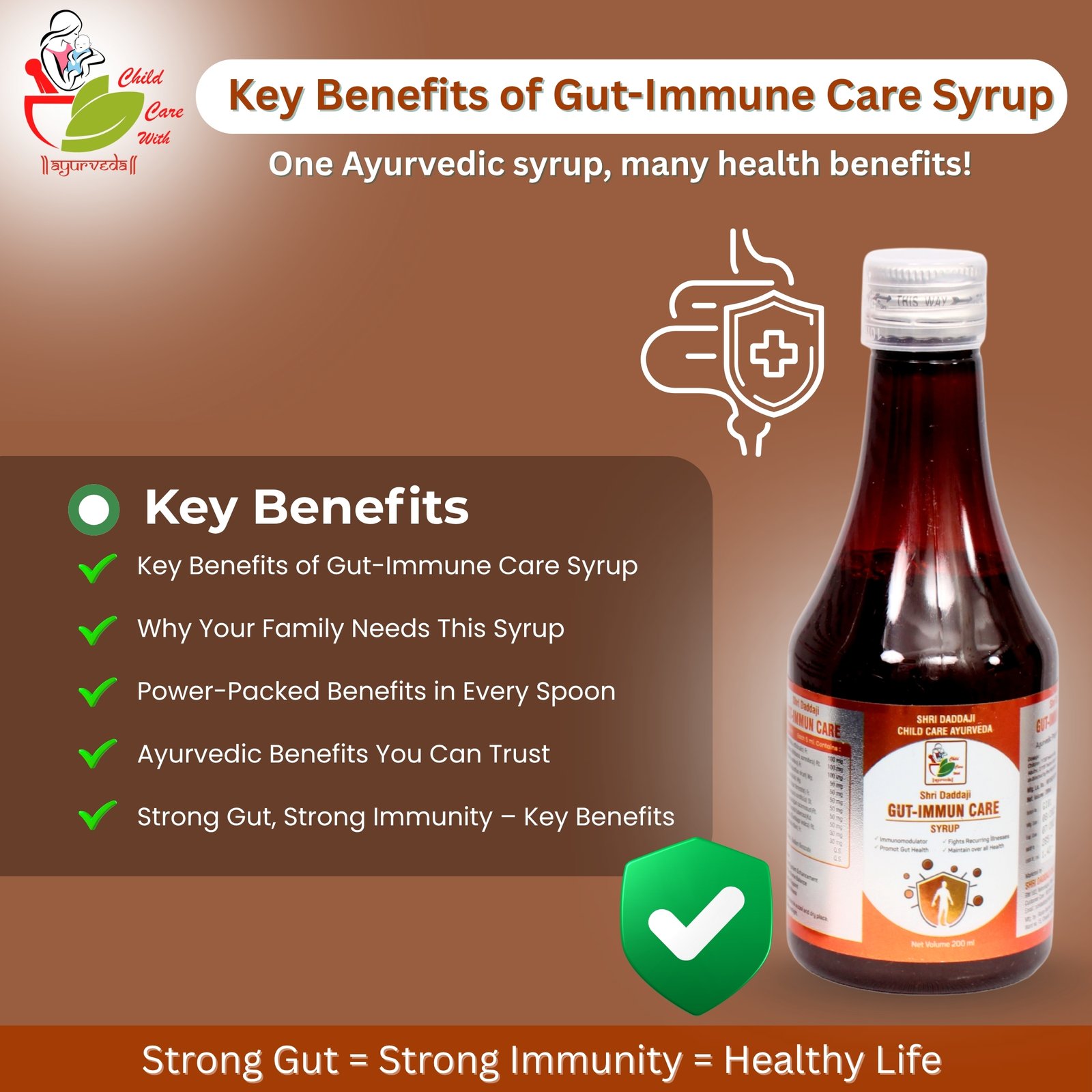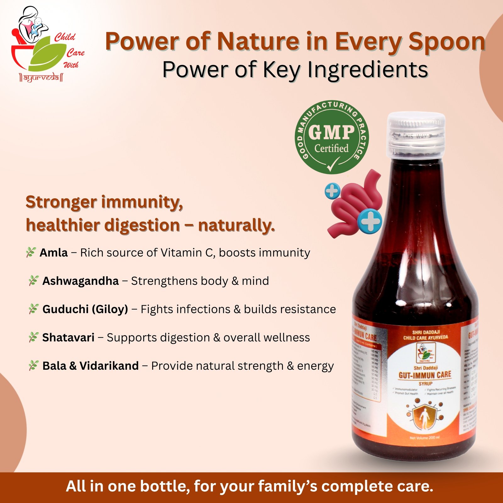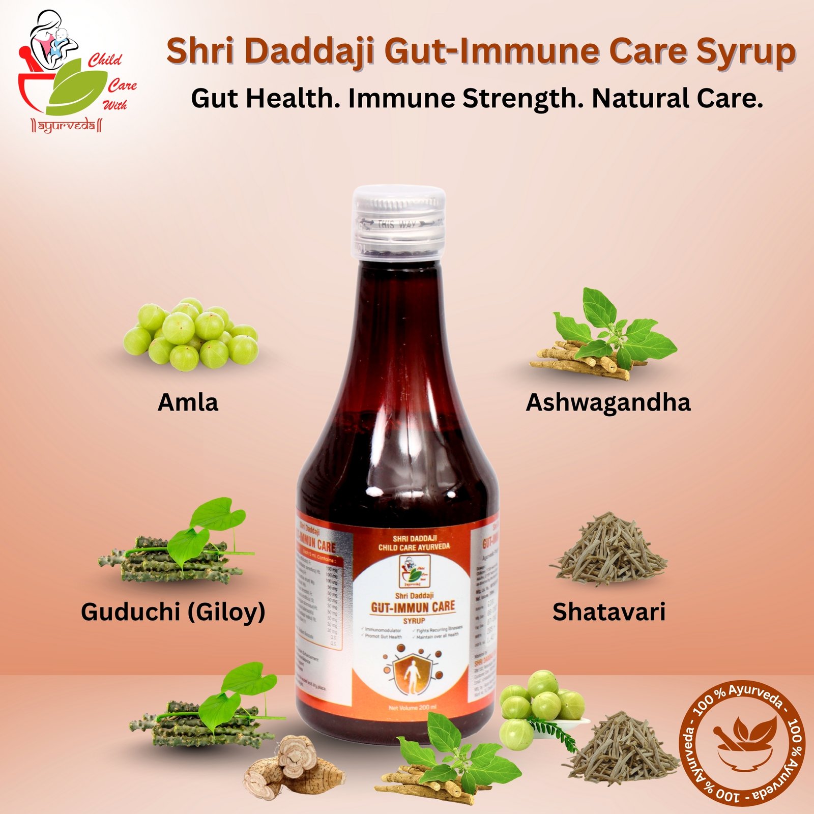 Shri Daddaji Gut-Immun Care Syrup 200ml | Ayurvedic Immunity Booster for Kids | Supports Gut Health & Overall Wellness | Strengthens Body Defense Naturally