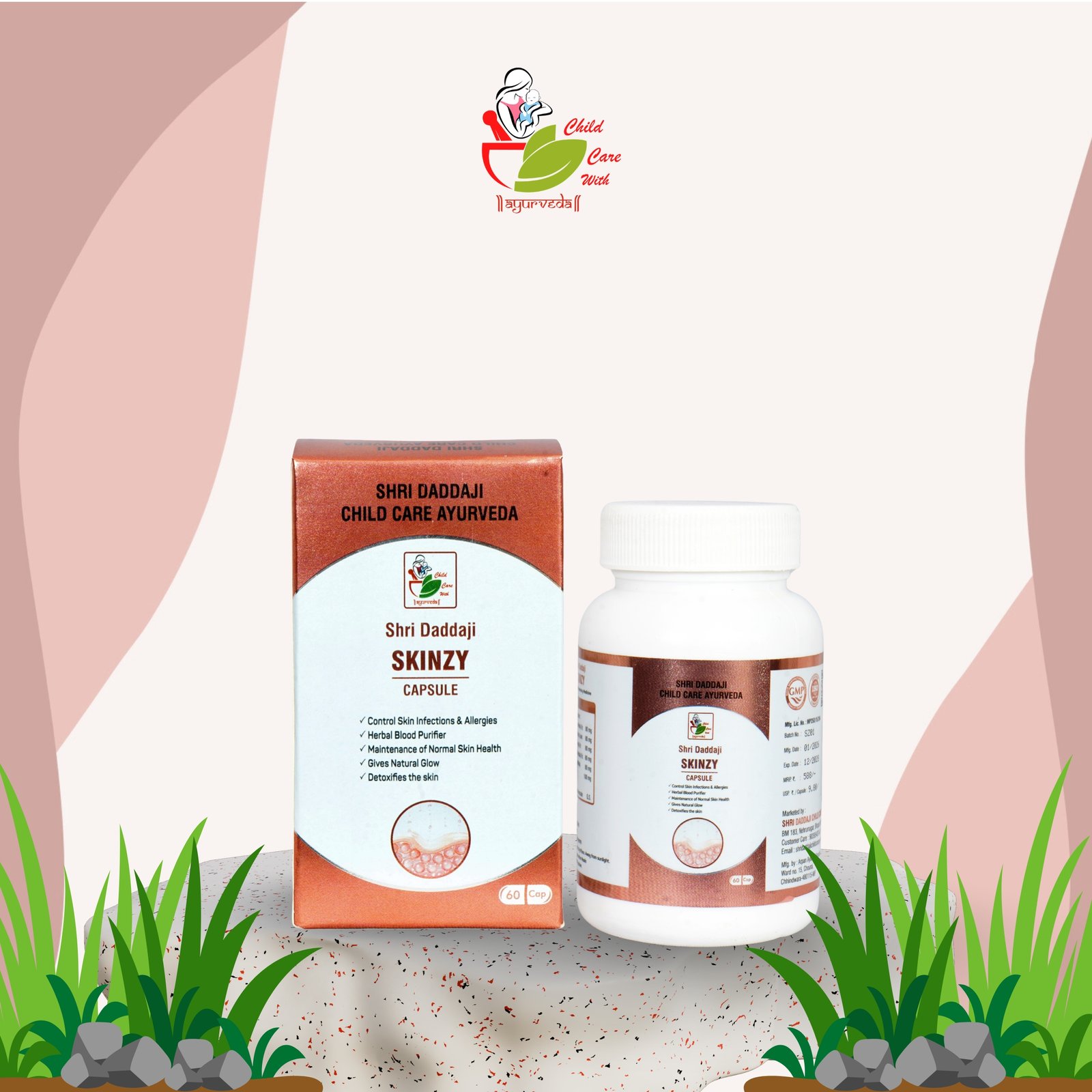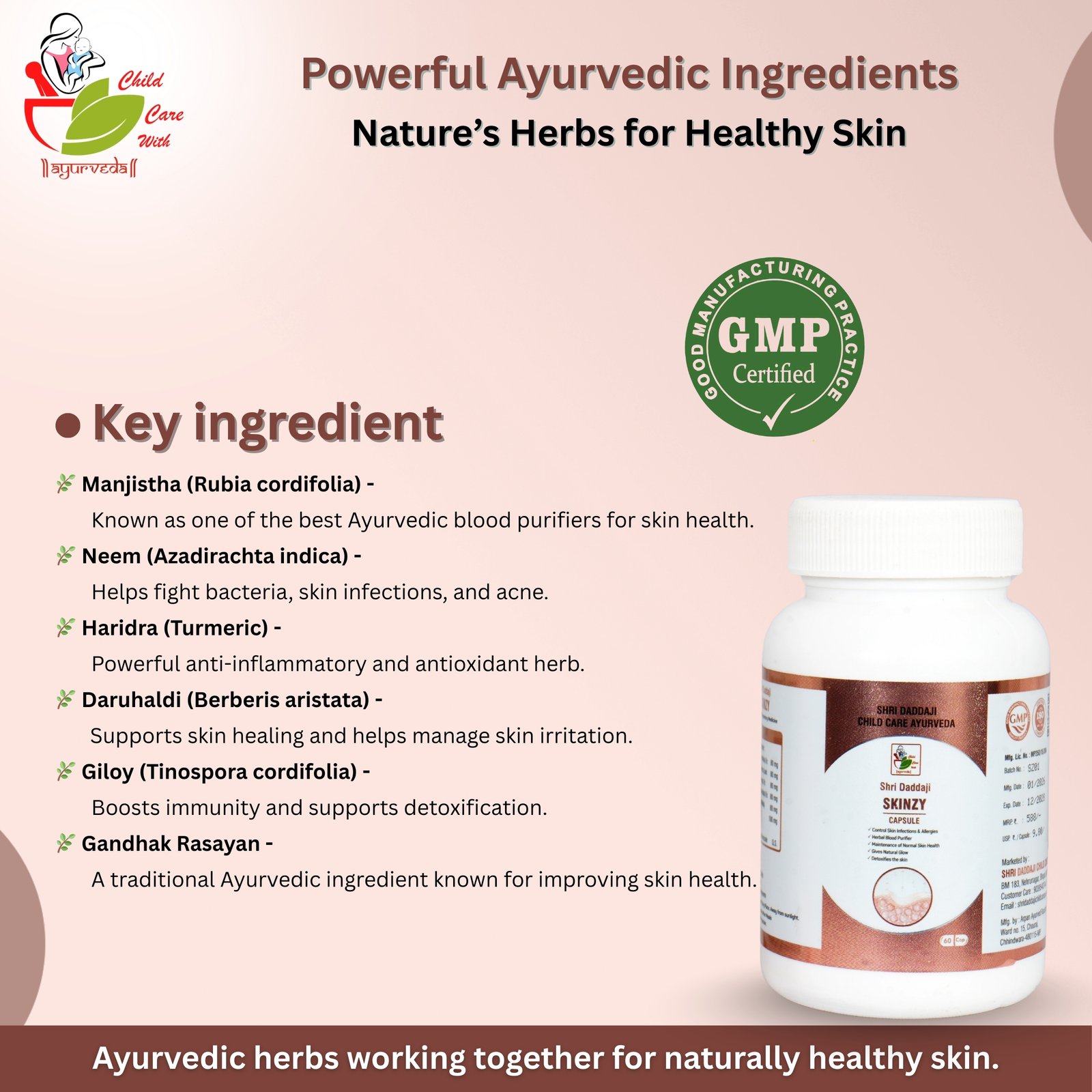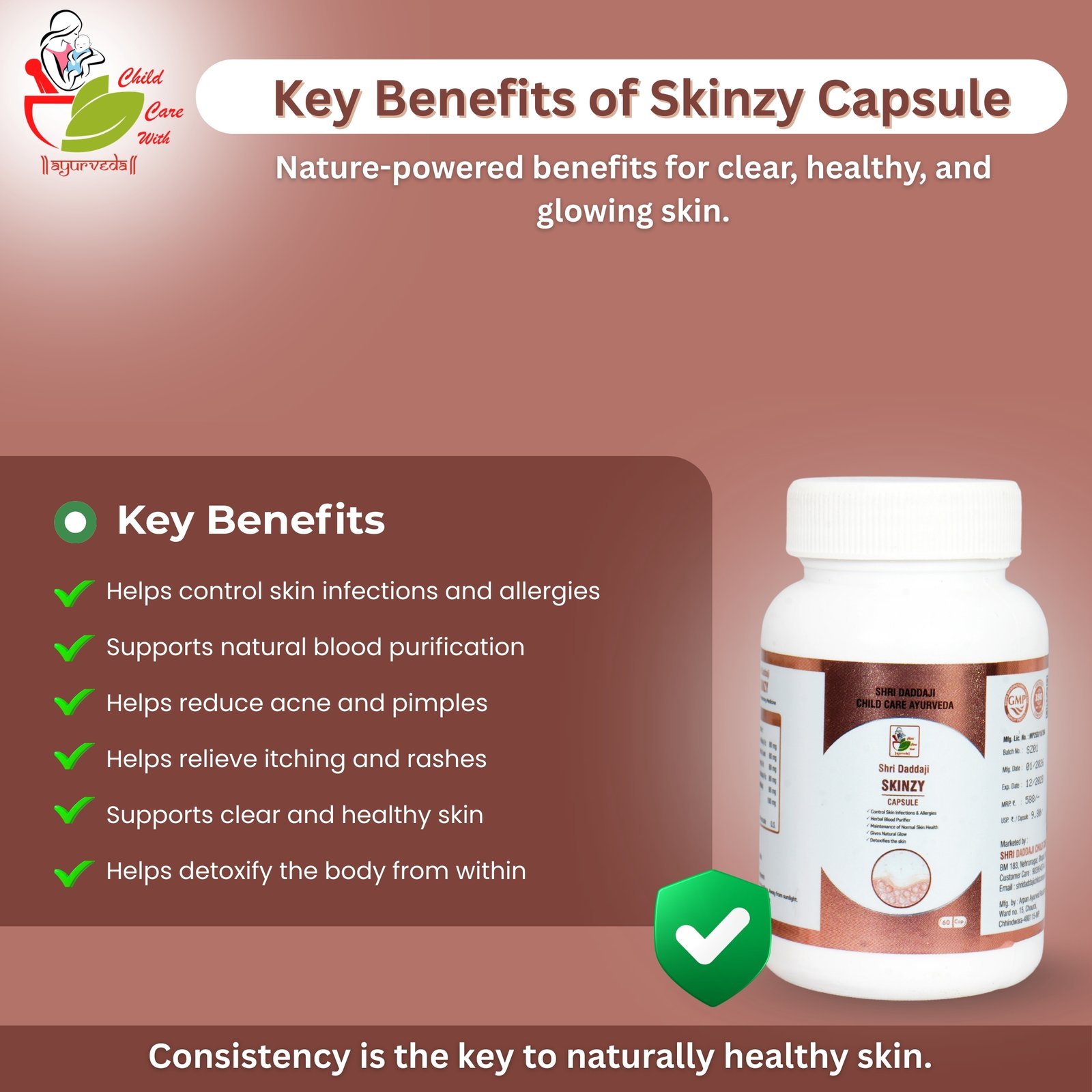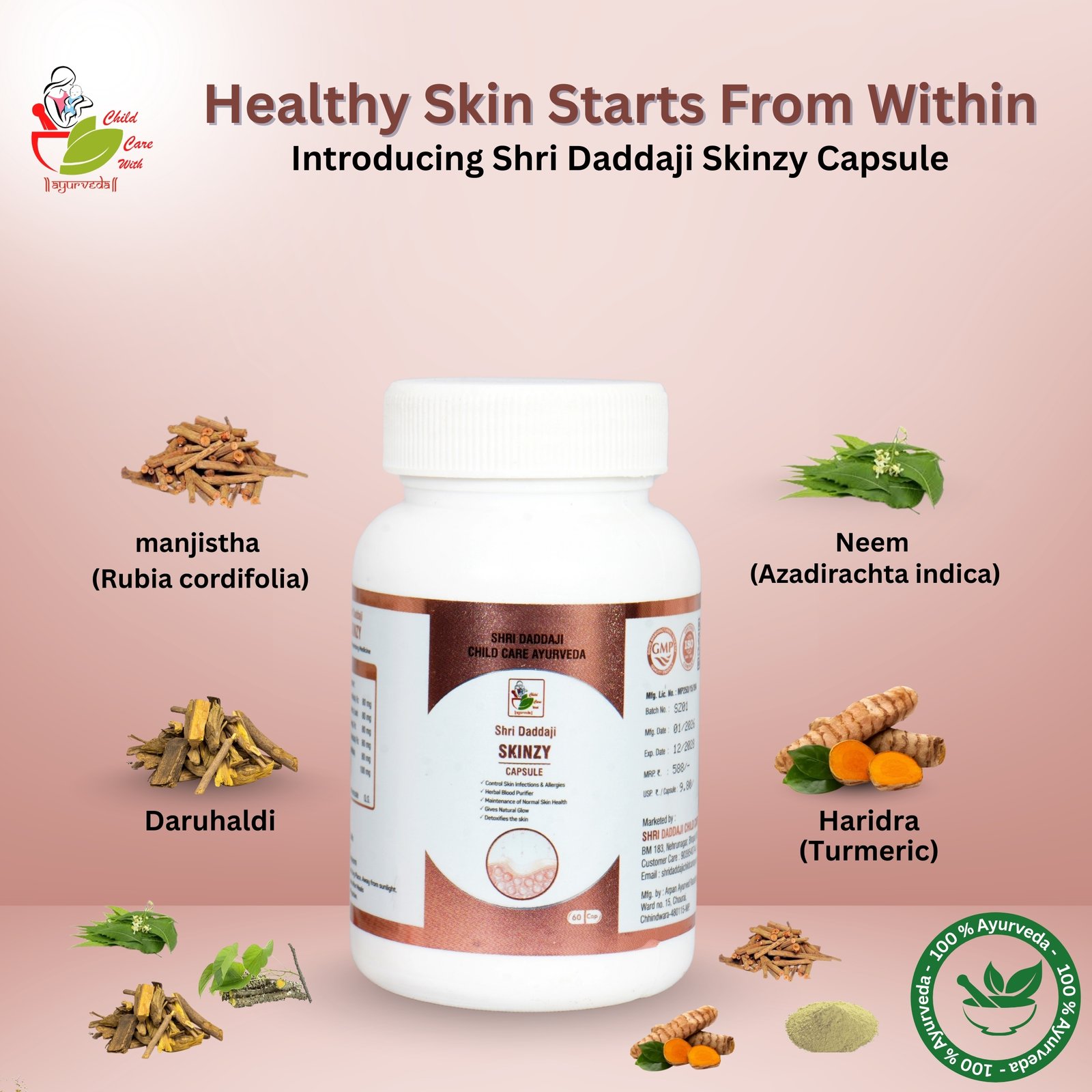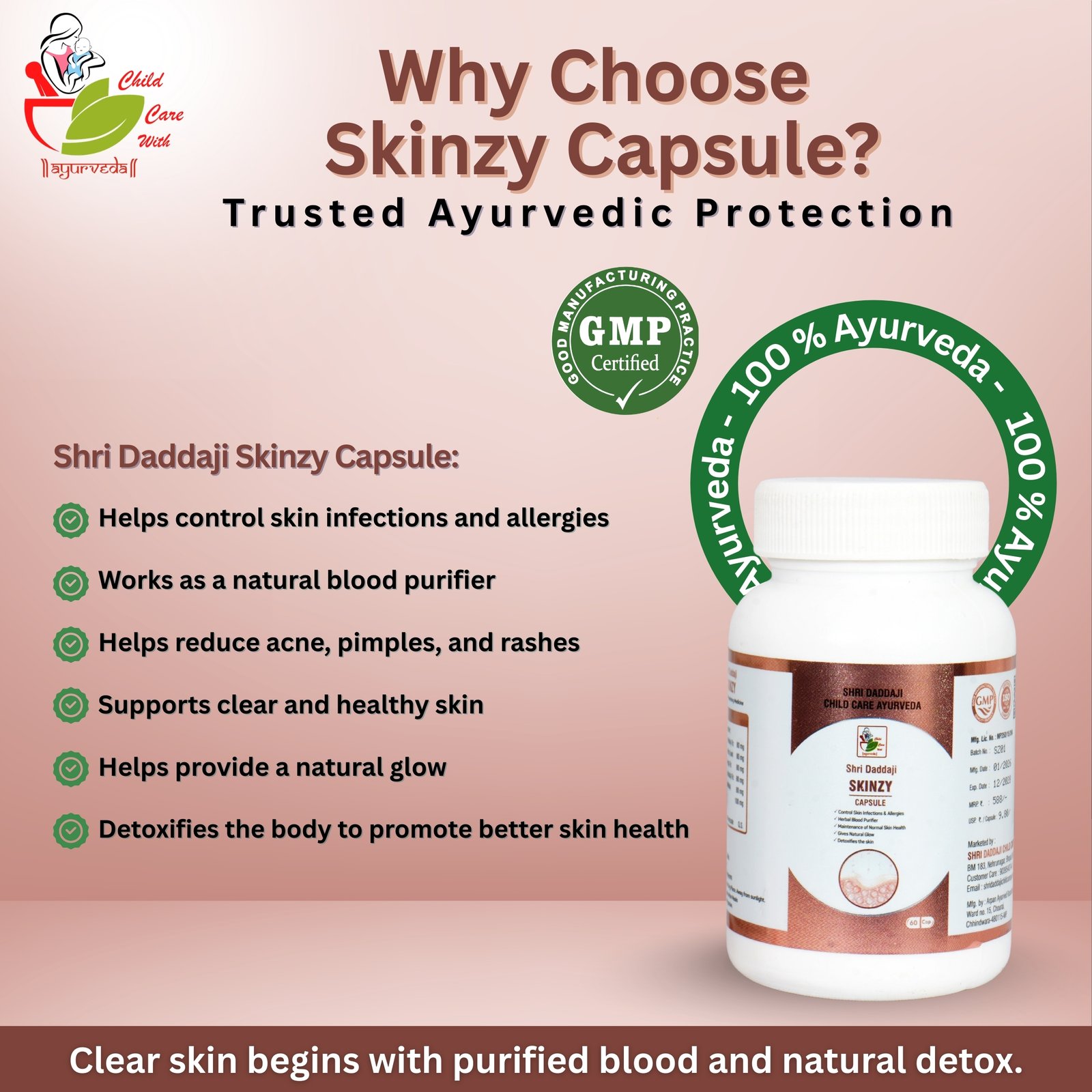 Shri Daddaji Skinzy Capsule, Ayurvedic Blood Purifier for Skin Allergy, Acne, Pimples, Itching and Rashes, Herbal Skin Detox, 60 Capsules
